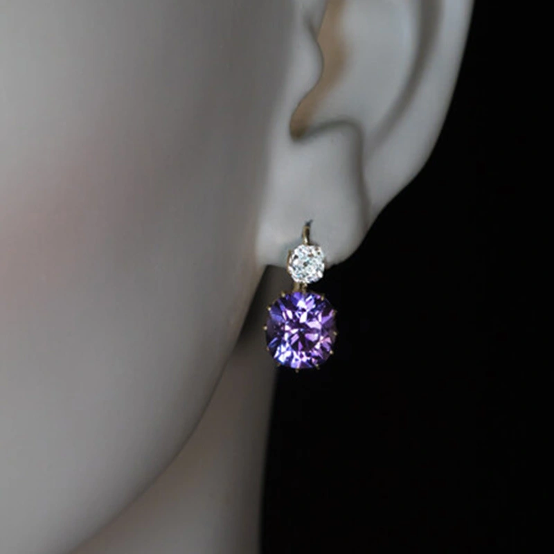أقراط دونغ ديمون الكورية الجنوبية الجديدة البسيطة والمتعددة الاستخدامات المصنوعة من الزركون الأرجواني بتصميم هندسي، أقراط أنيقة ونحيفة