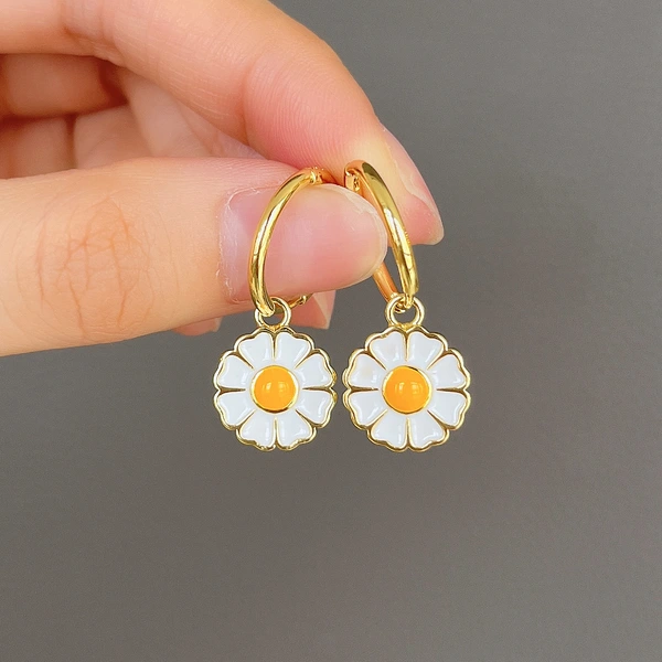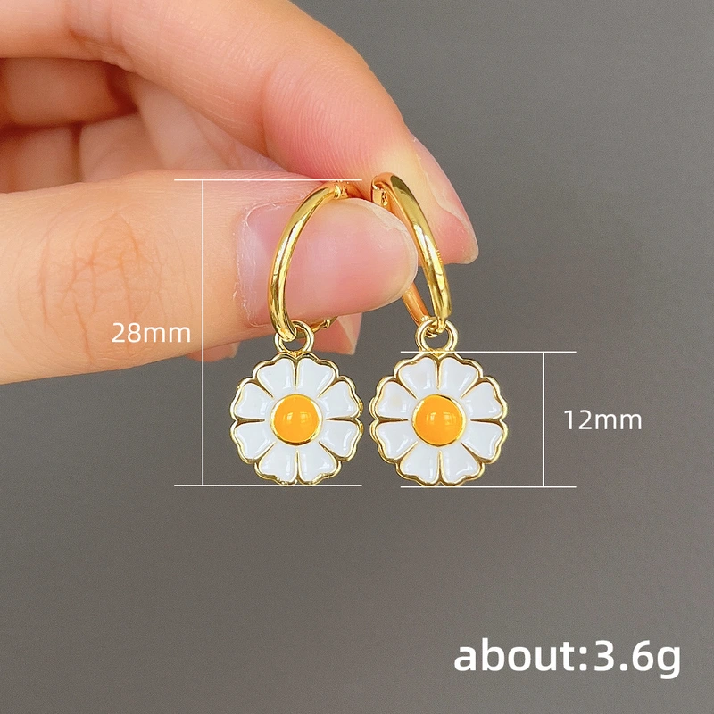 أقراط ديزي معدنية بسيطة وأنيقة، مزينة بزهرة الأقحوان، أقراط فرانجيباني مبتكرة للنساء