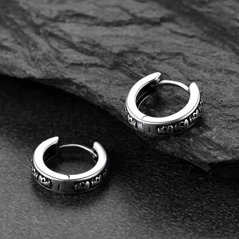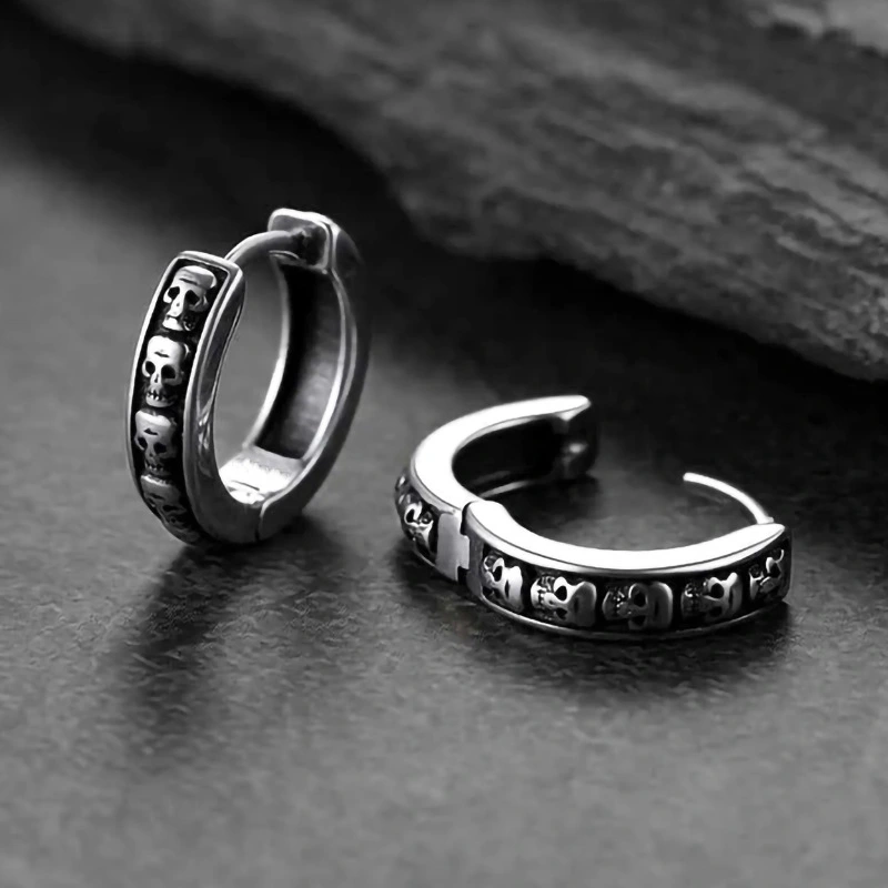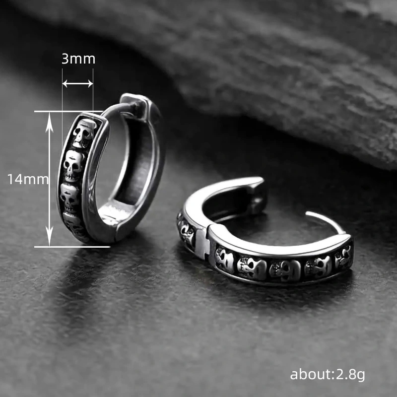 أقراط ذات ملمس رجعي أوروبي وأمريكية، أقراط جمجمة بانك عصرية، أقراط هيب هوب للرجال والنساء، أقراط داكنة