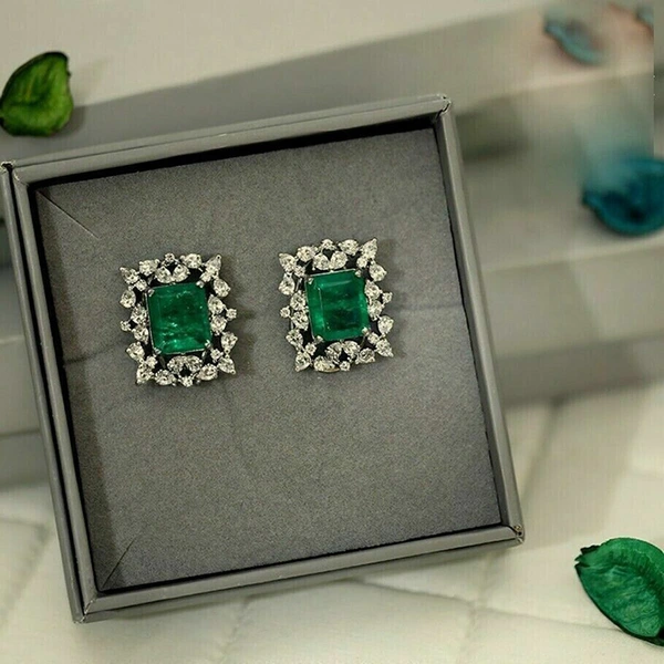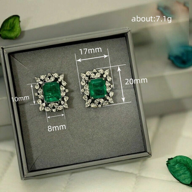 أقراط زمرد تقليد عتيق للنساء خريف وشتاء مزاج مبالغ فيه أقراط فاخرة خفيفة أقراط أميرة هندسية مربعة نسائية