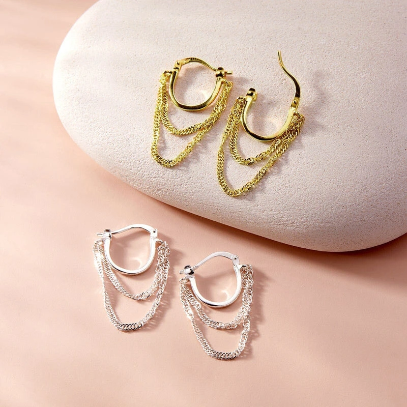 أقراط سلسلة فرنسية بتصميم عصري للارتداء اليومي، أسلوب شعبي ساخن، مزاج شعبي أوروبي وأمريكية