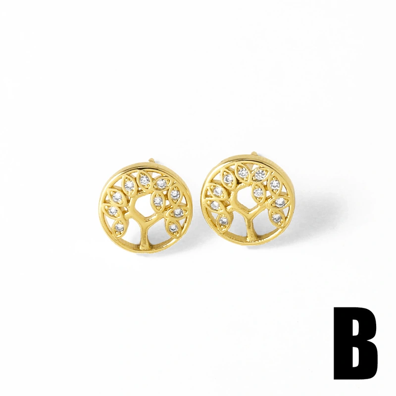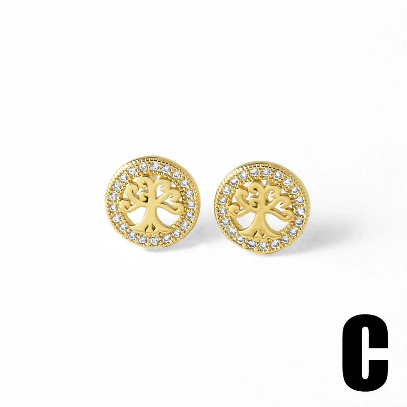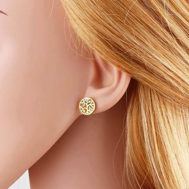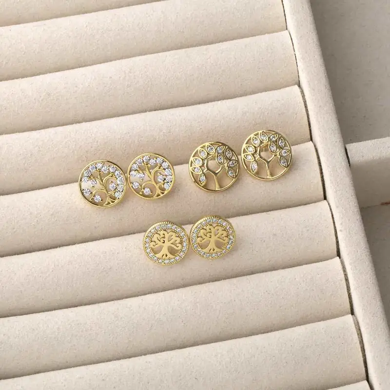 أقراط شجرة الحياة الأكثر مبيعًا في المجوهرات النسائية المطلية بالنحاس والذهب الحقيقي أقراط مستديرة متعددة الاستخدامات erw43