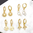 أقراط على شكل قلب يابانية وكورية، أقراط مرصعة بأحجار صغيرة ثنائية اللون على شكل عباد الشمس وعباد الشمس، أقراط بتصميم مجوف أنيق