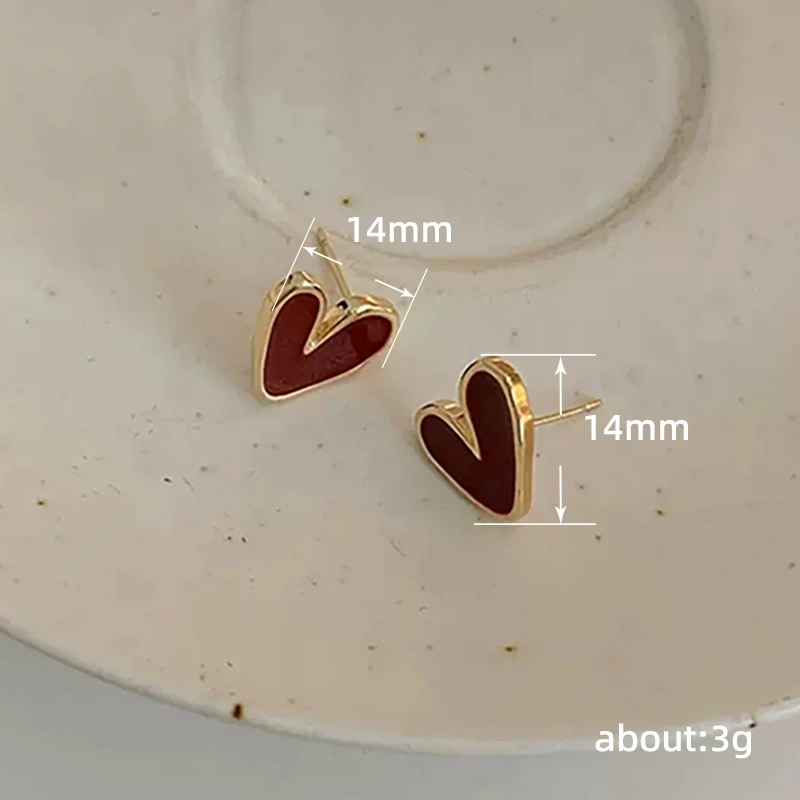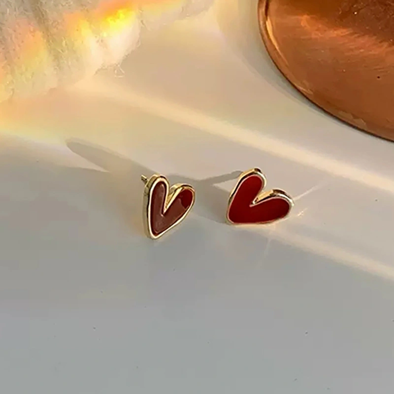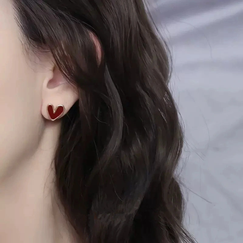 أقراط صغيرة ورائعة على شكل قلب أحمر، أقراط للتنقل اليومي، أقراط على شكل قلب على طراز هونغ كونغ