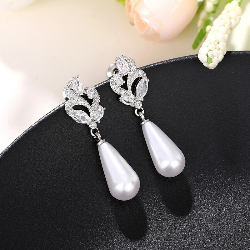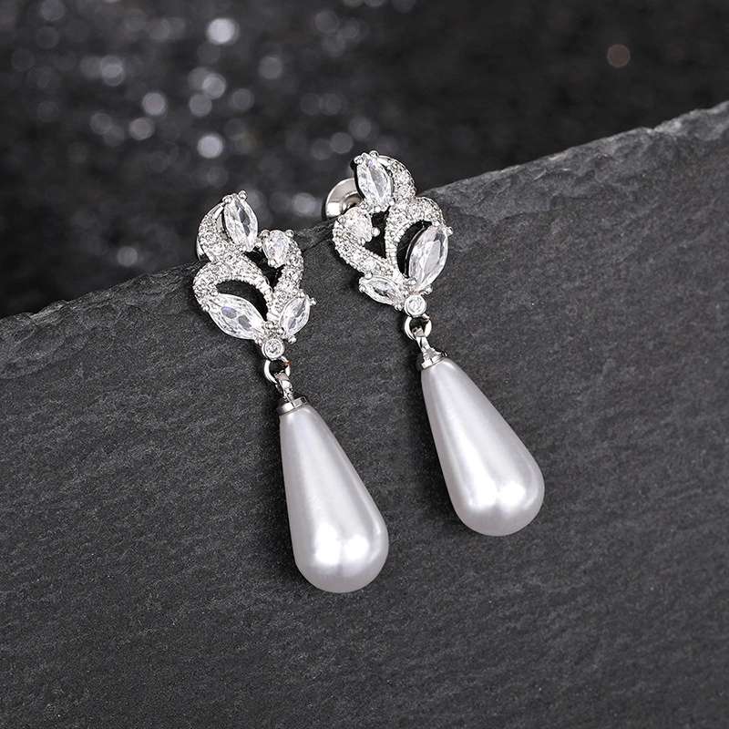 أقراط عالية الجودة للبيع بالجملة من الشركة المصنعة على الطراز الكوري مصنوعة من اللؤلؤ المقلد على شكل دمعة وأقراط زفاف زهرية