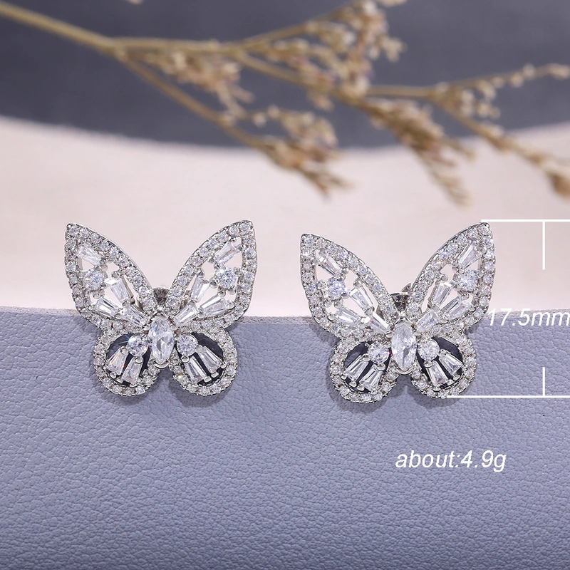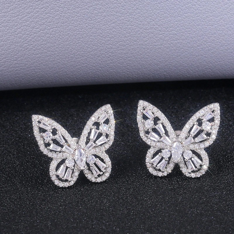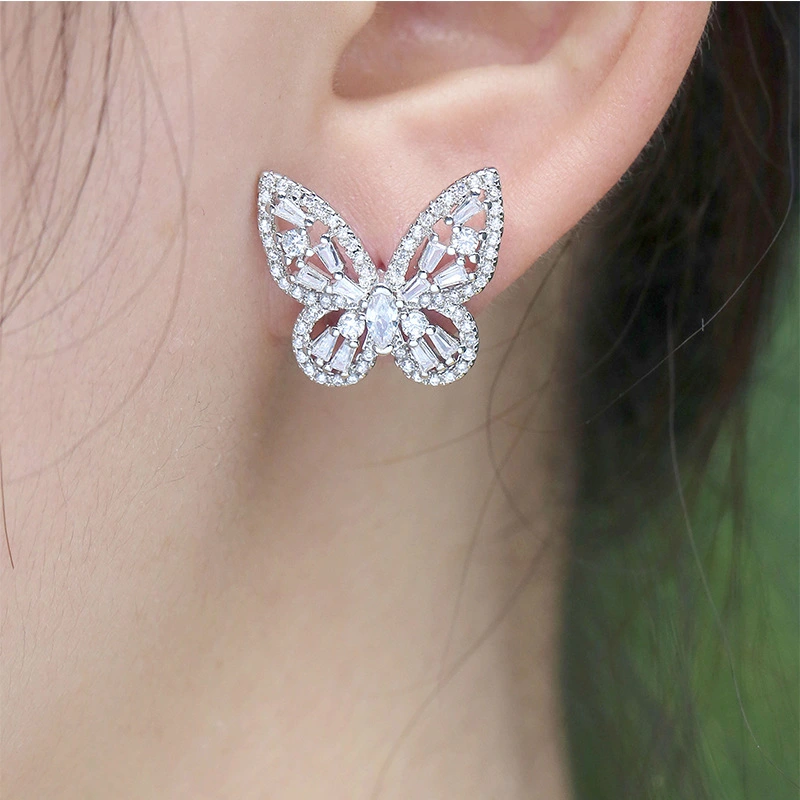 أقراط عصرية من الزركون على شكل فراشة مجوفة، أقراط كورية أنيقة، أقراط من المشاهير على الإنترنت، إكسسوارات ملابس متناسقة