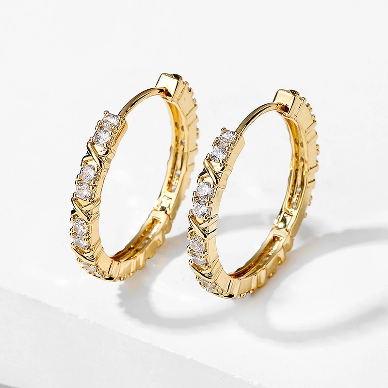 أقراط كورية رائجة البيع على طراز هونغ كونغ بتصميم حرف X متقاطع ومشبك أذن مرصع بالزركون الدقيق