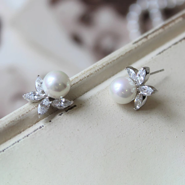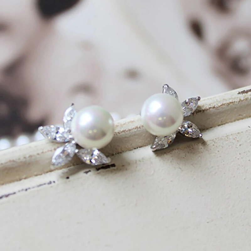 أقراط كورية رائعة وأنيقة، على الطراز الكوري، أقراط زهرة اللؤلؤ المقلدة، أقراط ذات طابع فرنسي