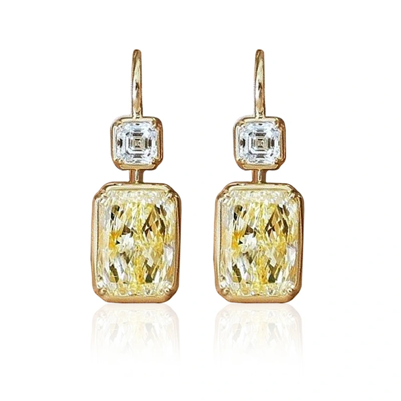 أقراط كورية فاخرة من الأحجار الكريمة الملونة، أقراط نسائية مرصعة بالألماس الأصفر على طراز المشاهير على الإنترنت، أقراط بسيطة ومتعددة الاستخدامات
