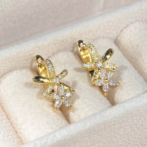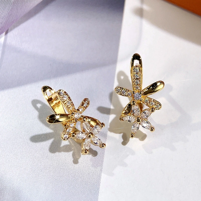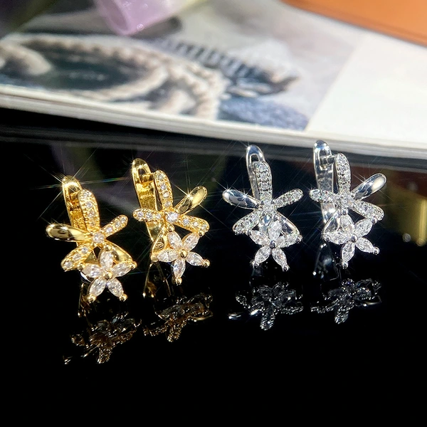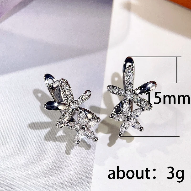 أقراط كورية لطيفة رائعة من النحاس المرصع بالزركونيوم على شكل زهرة أقراط نسائية عالية الجودة من المشاهير على الإنترنت