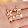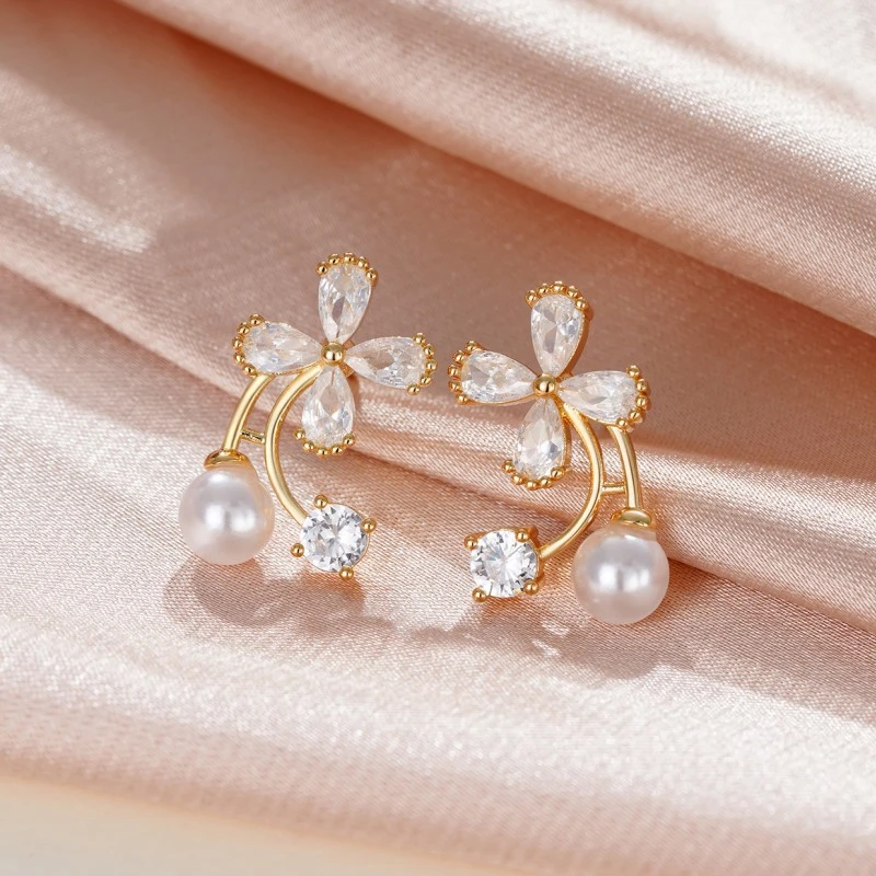 أقراط لؤلؤية على شكل زهرة حلوة، تصميم على طراز المشاهير، أقراط عصرية جديدة، أقراط رقيقة على طراز شانيل