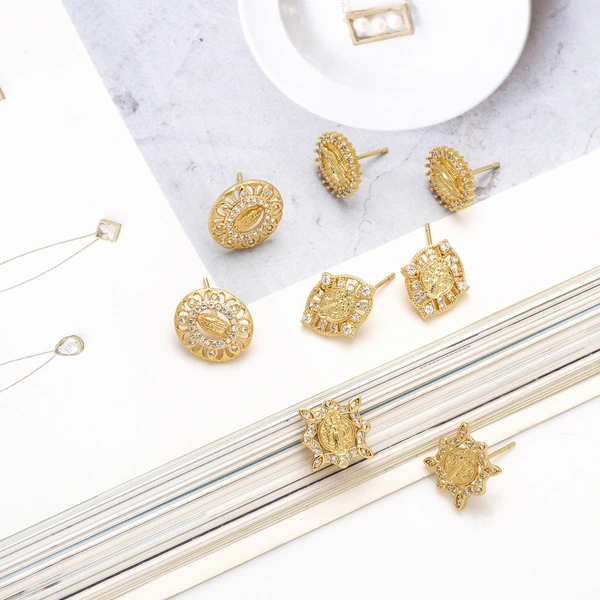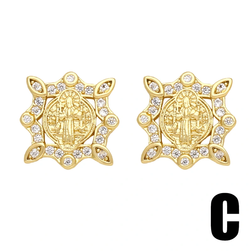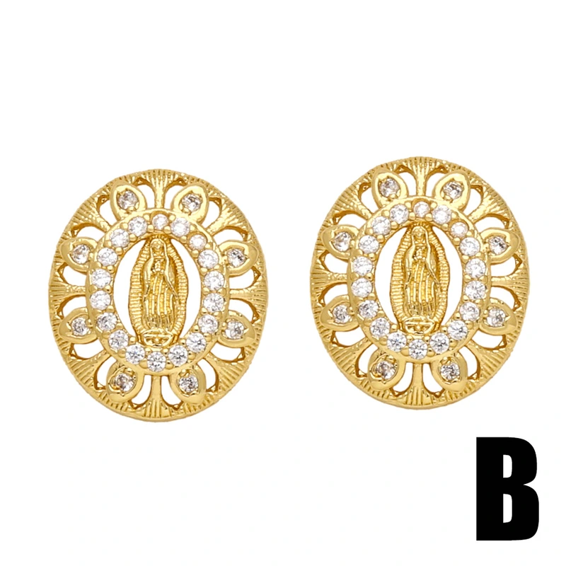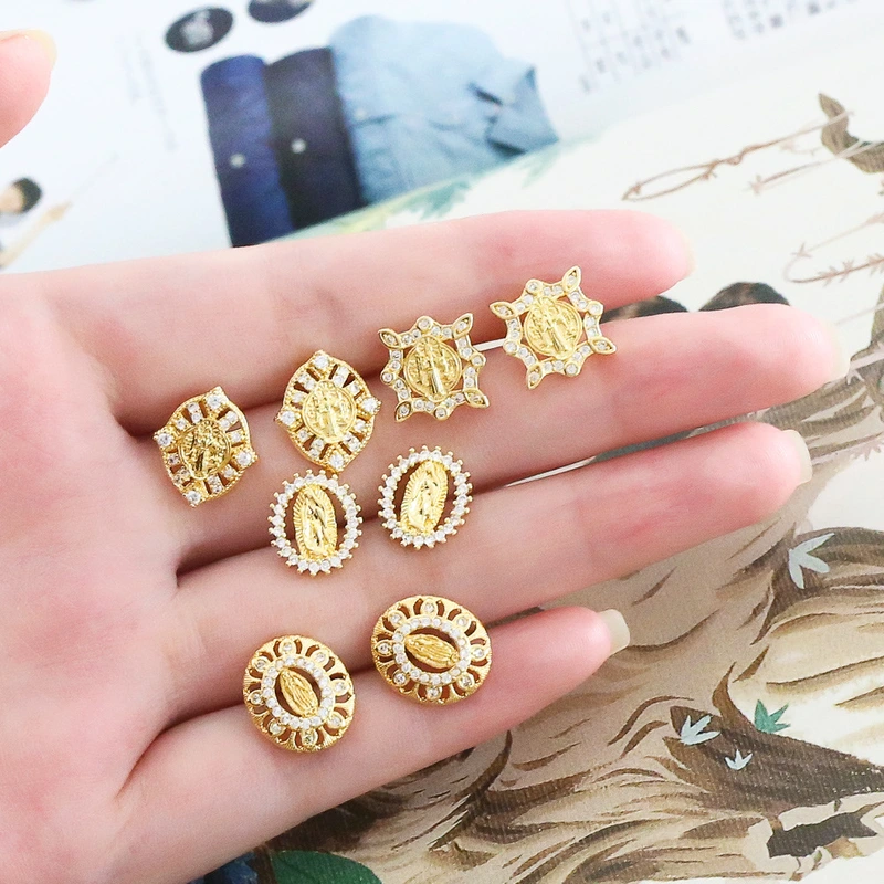 أقراط مريم العذراء الأكثر مبيعًا مرصعة بالزركون والنحاس المطلي بالذهب عيار 18 قيراطًا أقراط أنيقة مخصصة eru79