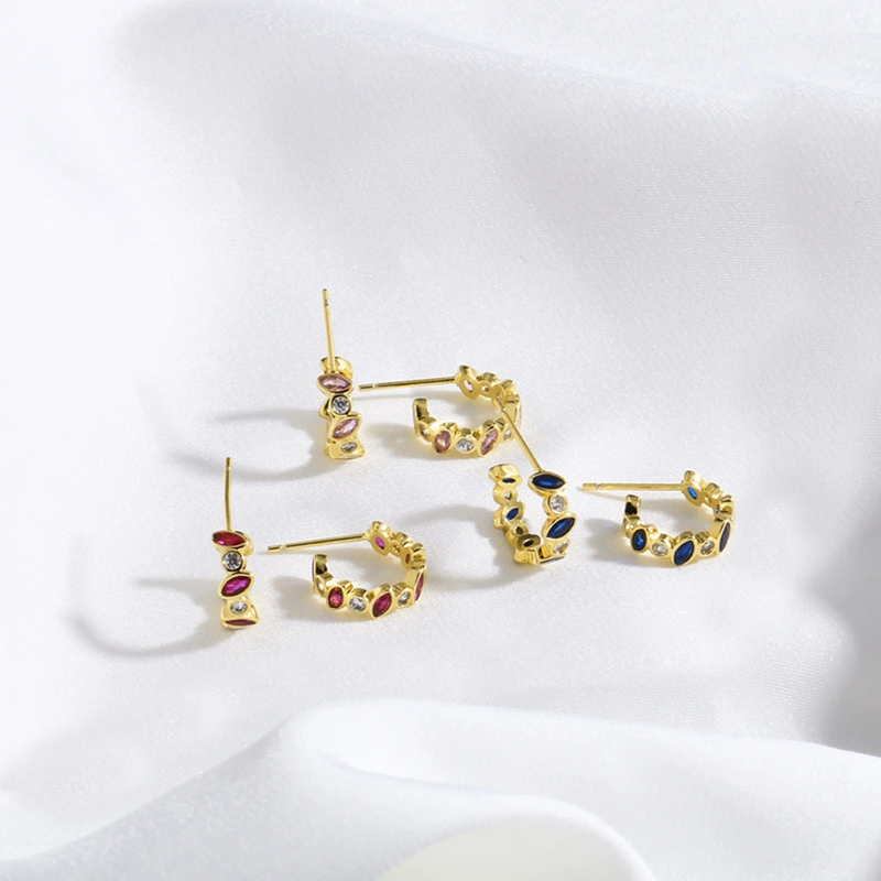 أقراط من الزركون الملون بتصميم جديد مثير من المجوهرات مطلية بالنحاس من الذهب عيار 18 قيراطًا، أقراط متناسقة للنساء ers57