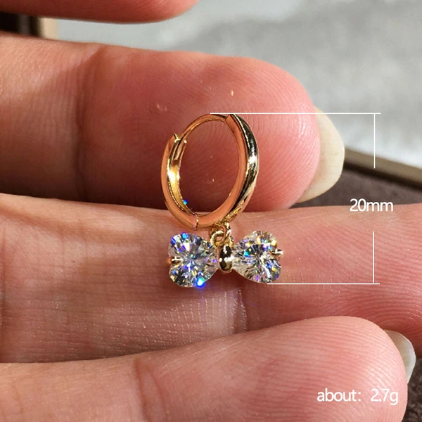 أقراط نسائية أنيقة مرصعة بالزركون بتصميم كوري على شكل فيونكة حلوة متدلية على شكل فيونكة