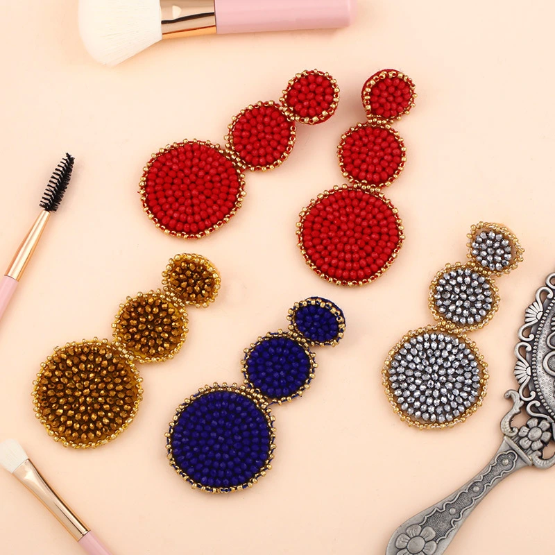 أقراط نسائية أوروبية وأمريكية على شكل قلب دائرية مزينة بخرز الأرز أقراط كريستالية erq522023 جديدة