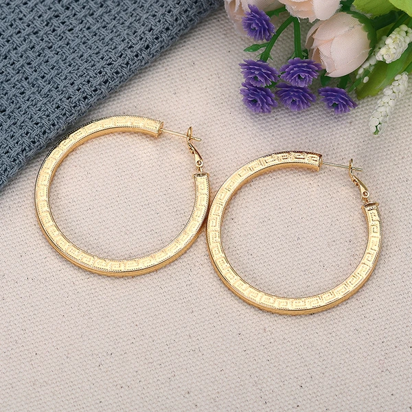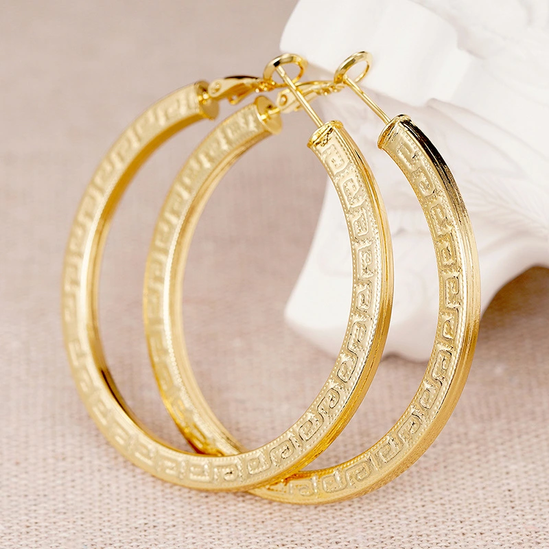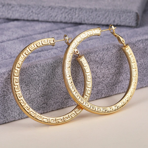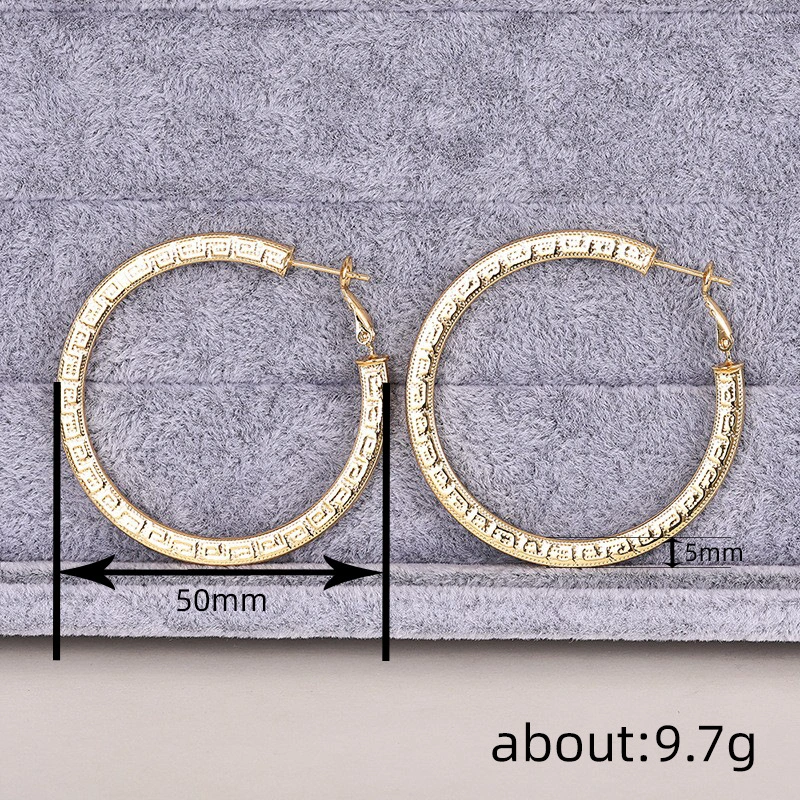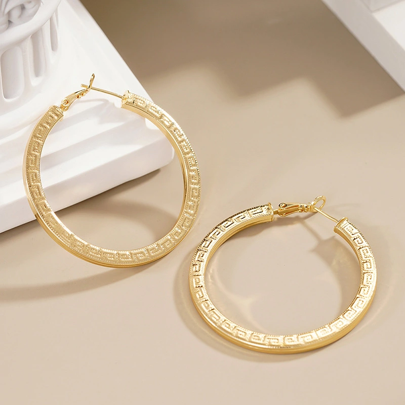 أقراط نسائية جديدة مبالغ فيها، بتصميم مسطح، إكسسوارات مطلية بالنحاس والذهب، منقوشة على شكل قوس على الطراز الشرقي