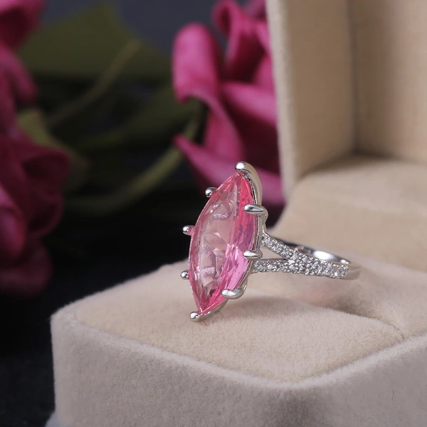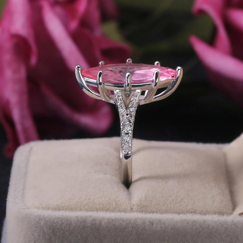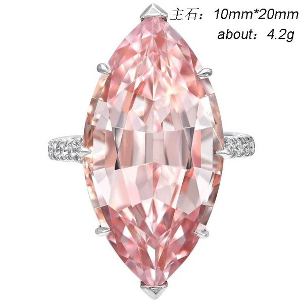 إكسسوارات أزياء أوروبية وأمريكية، خاتم كريستال وردي كبير على شكل ماركيز للنساء، مصنع بالجملة