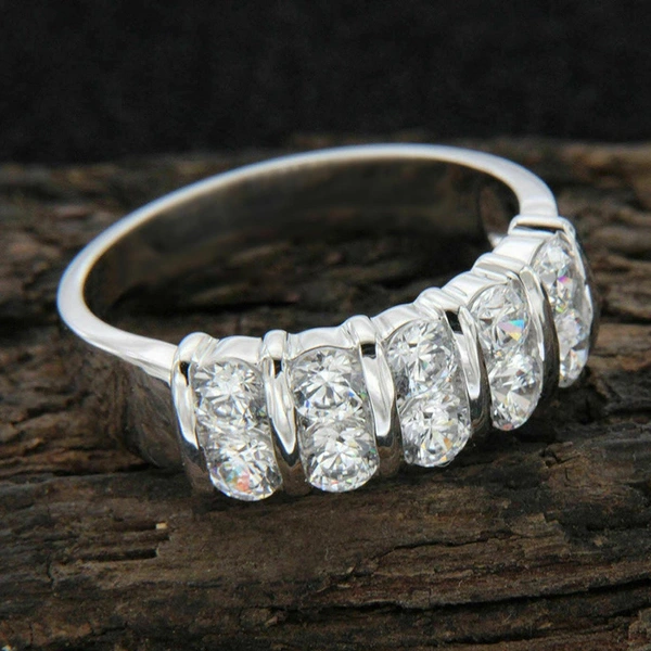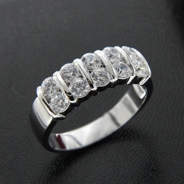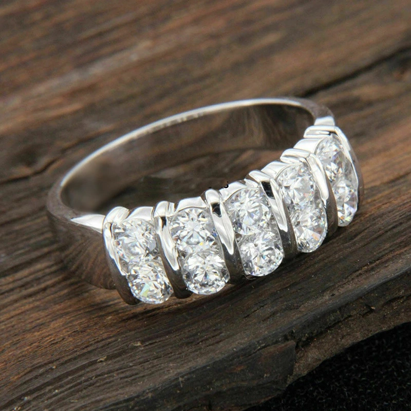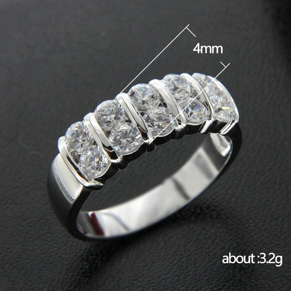 إكسسوارات أوروبية وأمريكية بسيطة من صفين من الزركون خاتم زفاف رجالي أنيق لحفل الخطوبة خاتم تبادل للنساء