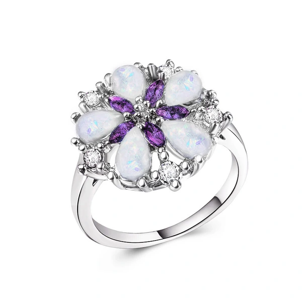 إكسسوارات إبداعية أوروبية وأمريكية رائعة من زهرة الخمس بتلات مصنوعة من حجر الأوبال الاصطناعي خاتم أوبال نسائي