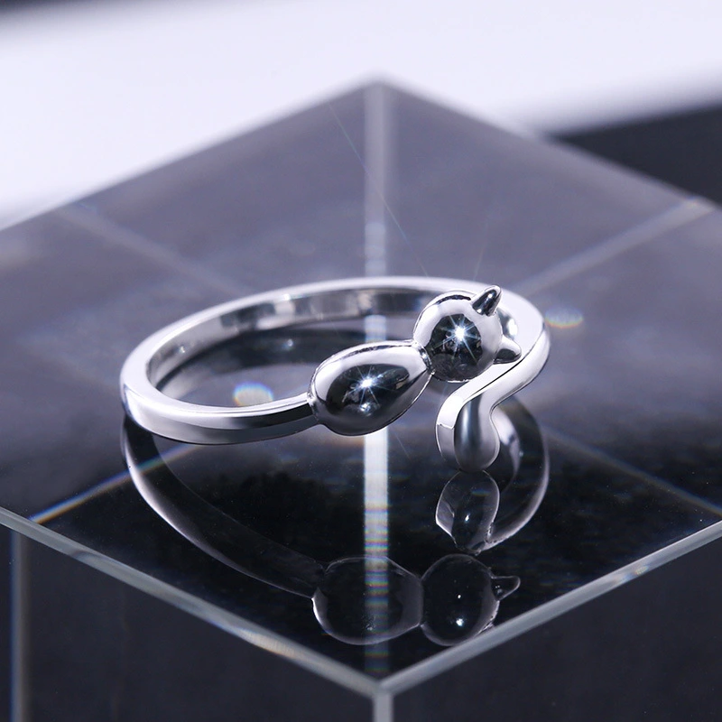 إكسسوارات إبداعية جديدة لشخصية يابانية وكورية، خاتم قطة لطيف للسيدات، خاتم قطة صغير، خاتم مفتوح قابل للتعديل
