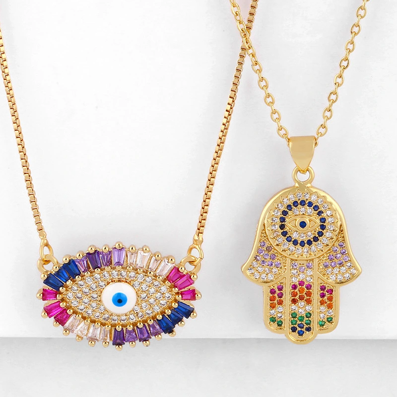 إكسسوارات جديدة قلادة يد فاطمة عين مرصعة بالزركون قلادة سوار قلادة nkq19