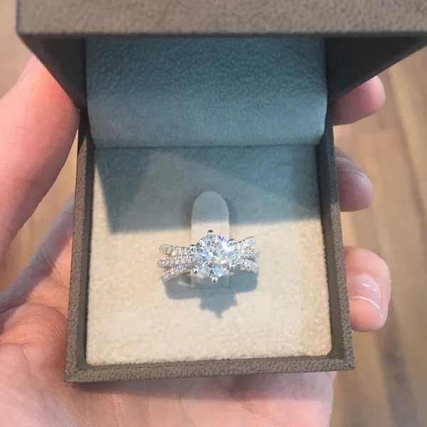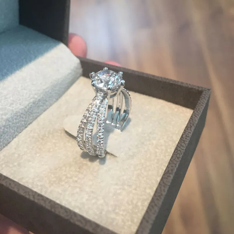 خاتم كلاسيكي مرصع بأحجار الزركون المقلد بأربعة مخالب للنساء، خاتم ذراع ملتوي مزدوج اللون، خاتم خطوبة وزواج للنساء