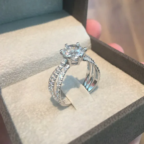 خاتم زفاف كلاسيكي مرصع بالزركون بستة مخالب على الطراز الأوروبي والأمريكي، خاتم فاخر خفيف الوزن، مناسب لجميع المناسبات، مرصع بالزركون بستة مخالب على الطراز الأوروبي والأمريكي