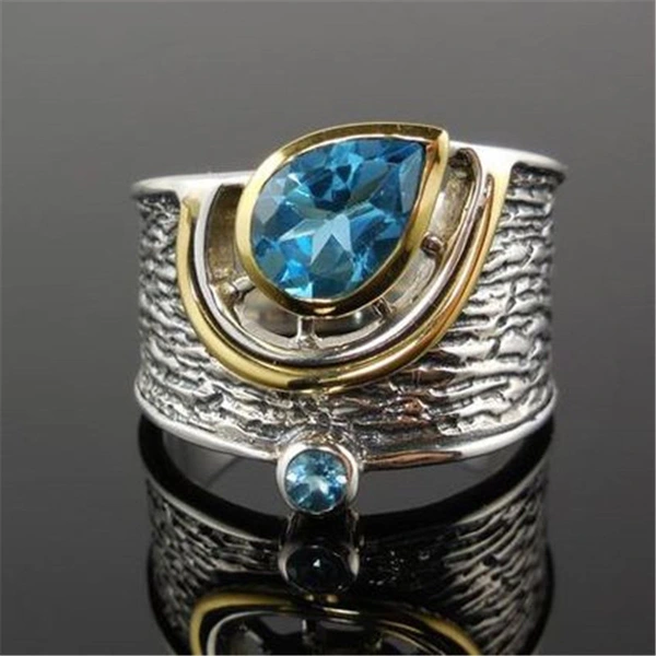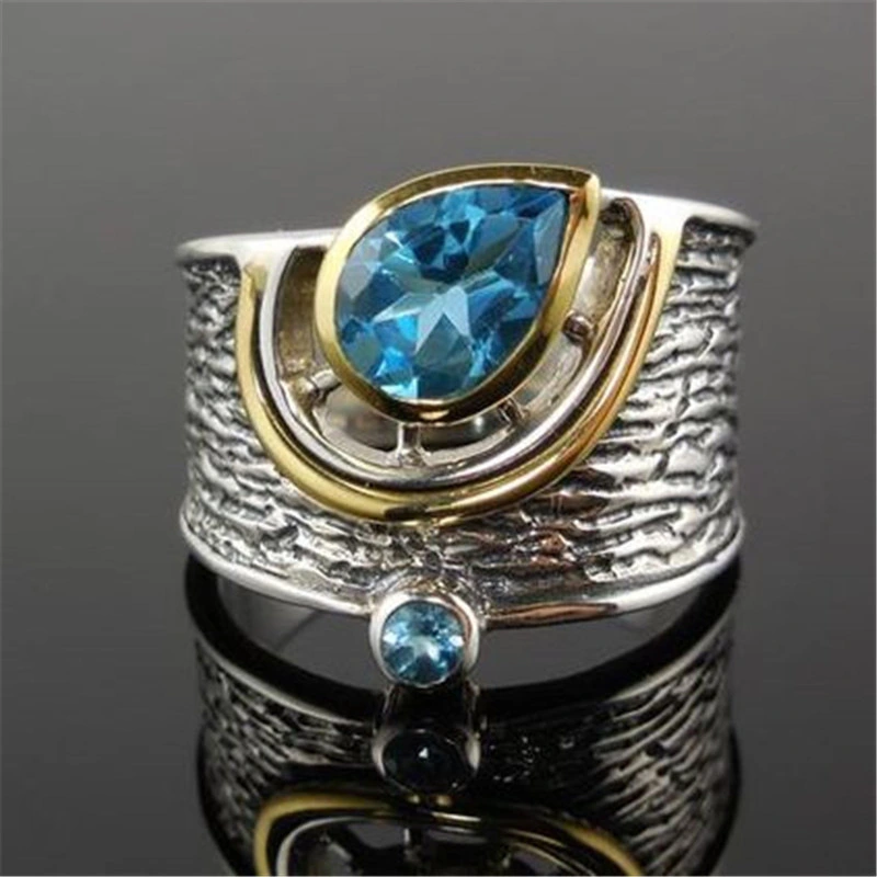 إكسسوارات رائجة البيع، نمط عرقي إبداعي، خاتم زركون حجر الراين الأزرق، خاتم نسائي عصري
