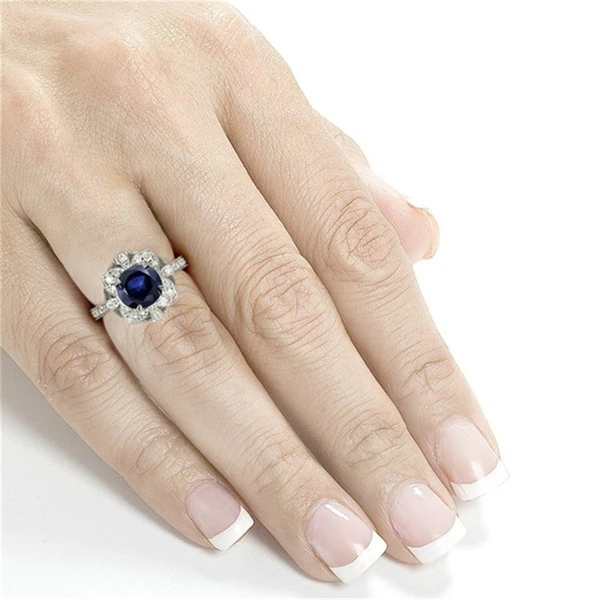 إكسسوارات رائجة البيع عبر الإنترنت: خاتم نسائي عصري على شكل زهرة مجوفة مرصع بالزركون الأزرق خاتم إصبع مجوهرات اليد