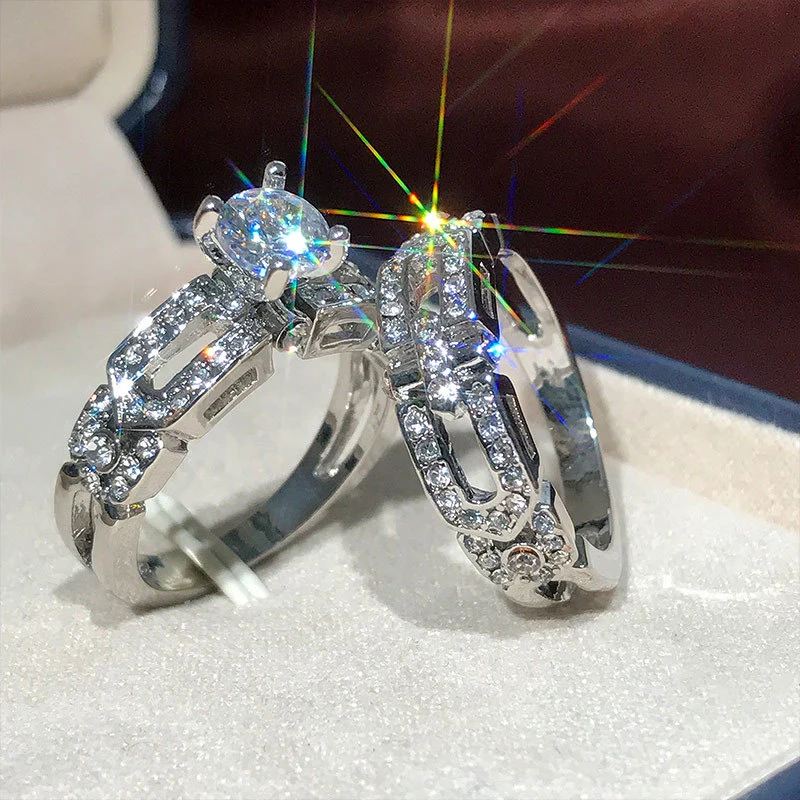إكسسوارات رائجة البيع: مجموعة خواتم الخطوبة النسائية المجوفة ذات الأربعة مخالب الكلاسيكية، خاتم زوجين عصري