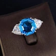 البث المباشر للمجوهرات بالجملة أزياء asscher خاتم الأحجار الكريمة الملونة الماس الإناث الأوروبية والأمريكية الفاخرة الخفيفة خاتم المرأة