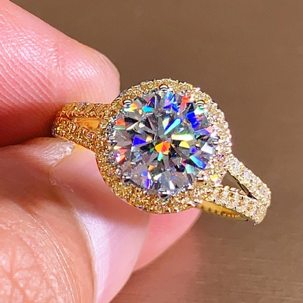 خاتم كلاسيكي مرصع بأحجار الزركون المقلد بأربعة مخالب للنساء، خاتم ذراع ملتوي مزدوج اللون، خاتم خطوبة وزواج للنساء