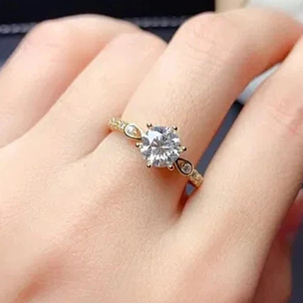 خاتم كلاسيكي مرصع بأحجار الزركون المقلد بأربعة مخالب للنساء، خاتم ذراع ملتوي مزدوج اللون، خاتم خطوبة وزواج للنساء