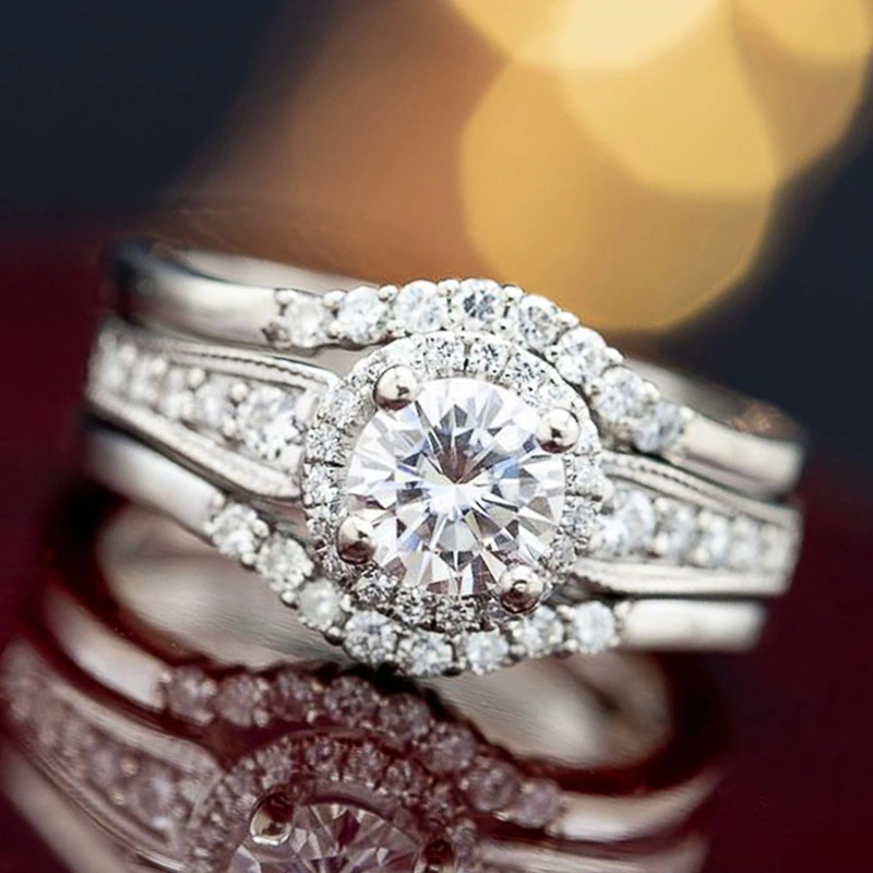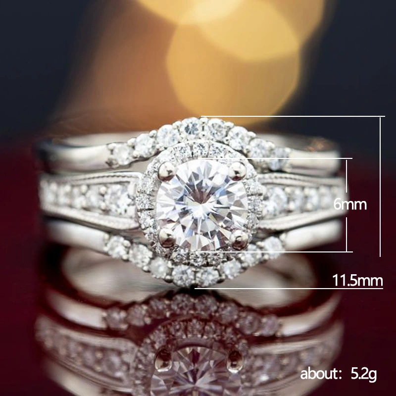 بث مباشر خاتم نسائي أوروبي وأمريكي من حجر المويسانيت المقلد خاتم زركون مطلي بالبلاتين خاتم زفاف سوار