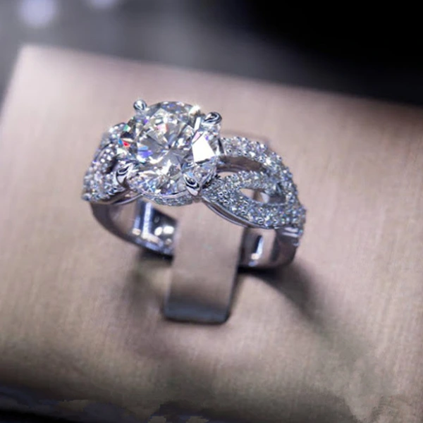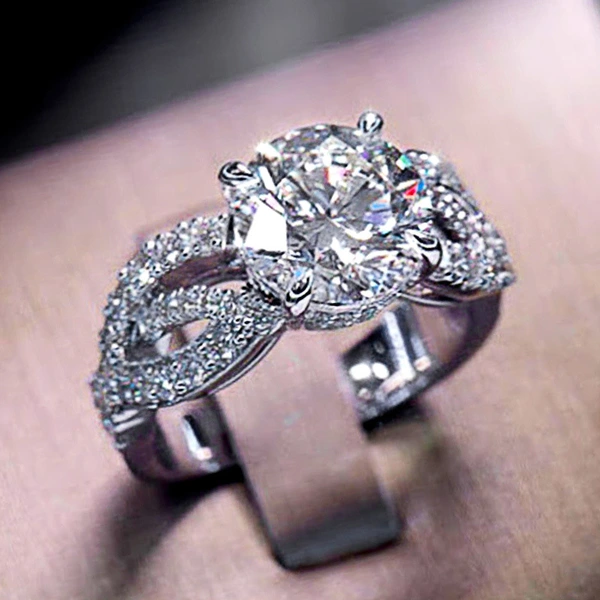 خاتم كلاسيكي مرصع بأحجار الزركون المقلد بأربعة مخالب للنساء، خاتم ذراع ملتوي مزدوج اللون، خاتم خطوبة وزواج للنساء