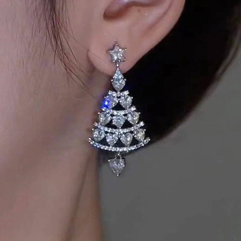 بث مباشر نفس نمط الأقراط الصغيرة المرصعة بالزركون وأقراط شجرة عيد الميلاد للنساء أقراط رائعة متعددة الاستخدامات على الطراز الرعوي