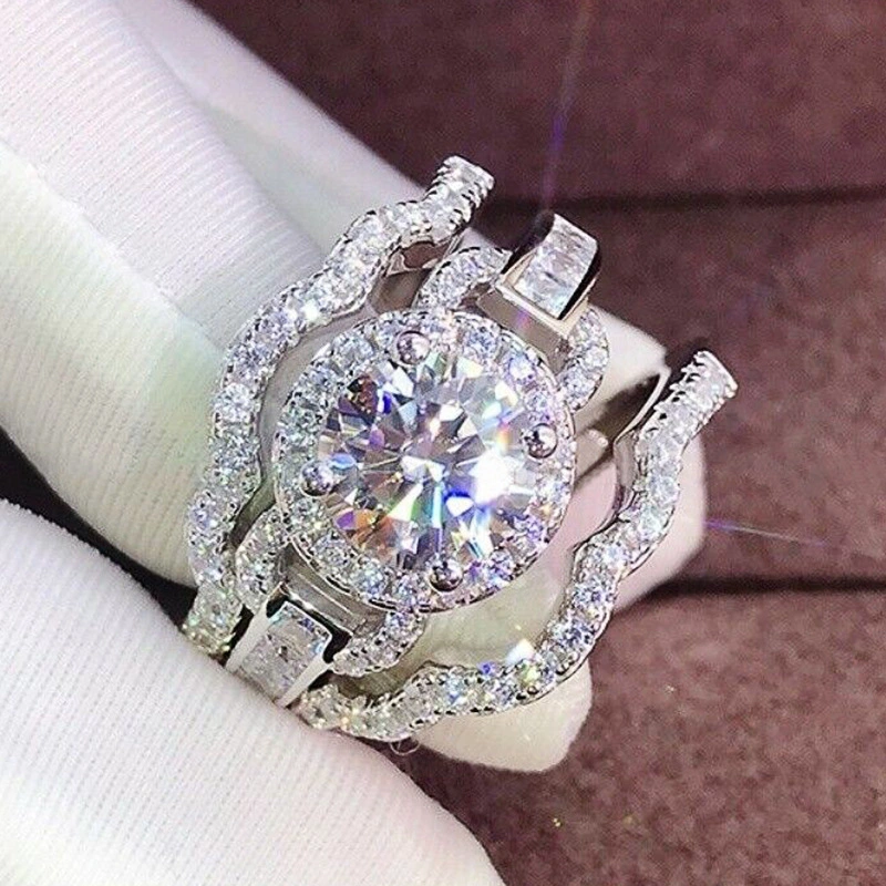 بيضة حمامة مستديرة مبالغ فيها، ثلاث مجموعات من الحلقات، هدية رائعة لعيد الحب للزوجين، دعائم حفل الزفاف
