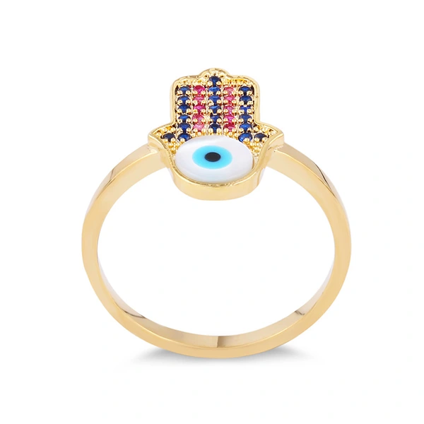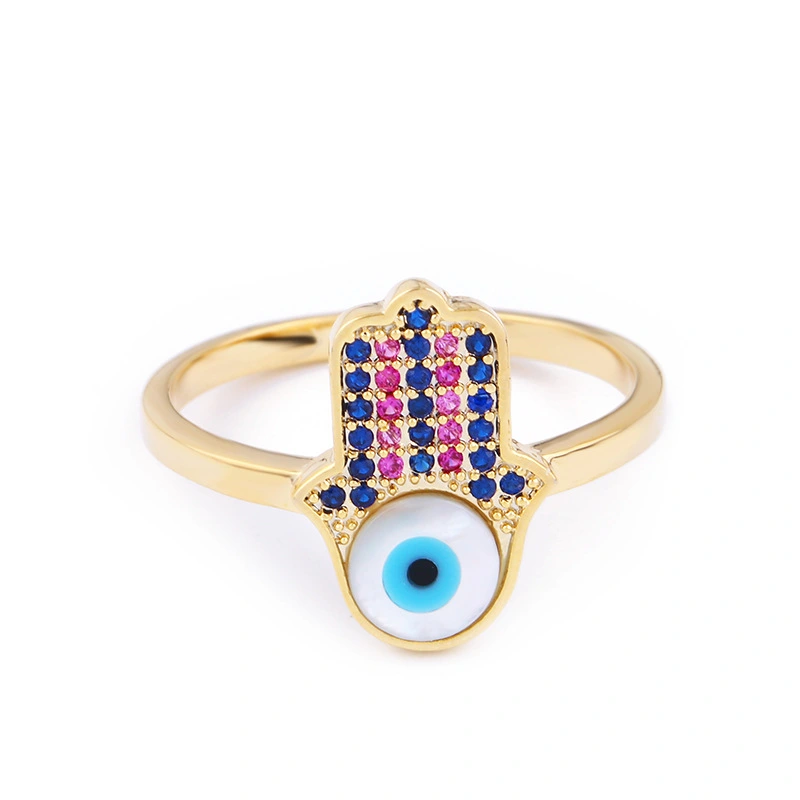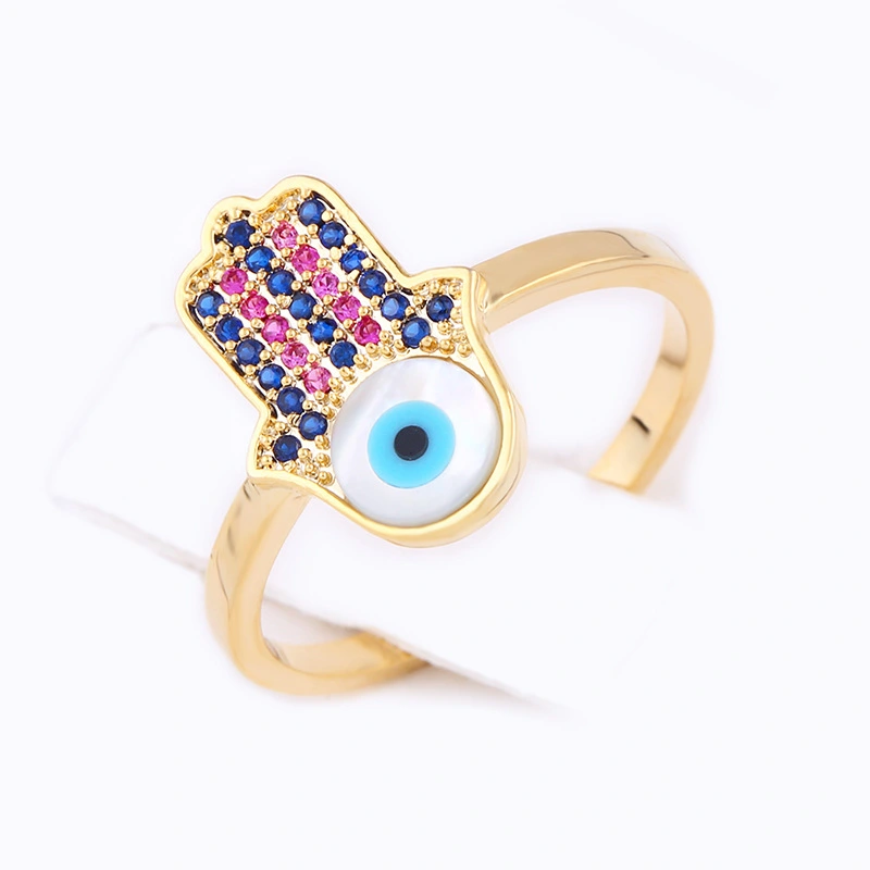 بيع تصفية خاتم عين الشيطان الأزرق التركي مرصع بالنحاس وحجر الصدف مجوهرات يد فاطمة rie76