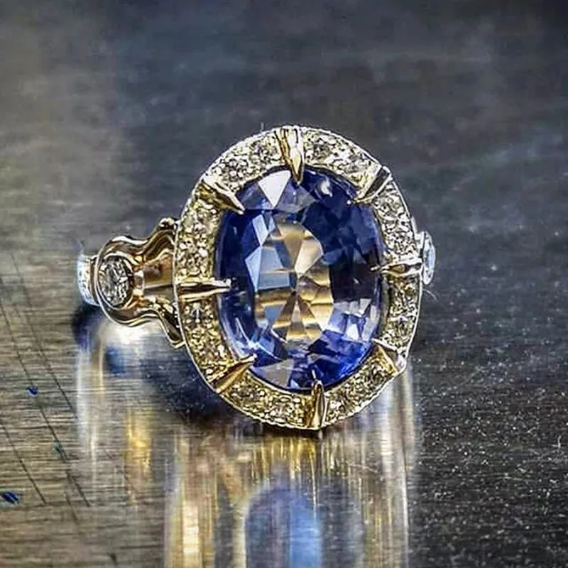 بيع ساخن في أوروبا وأمريكا، خاتم نسائي عصري جديد، خاتم زركون أزرق مائي، إكسسوارات حفلات الرقص