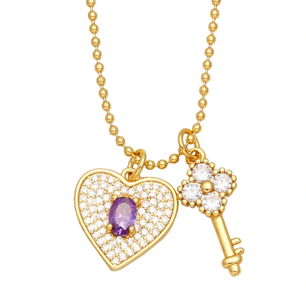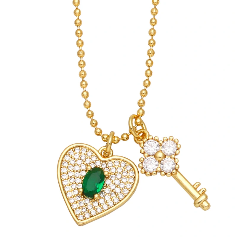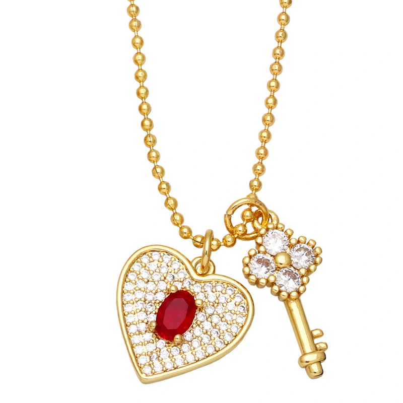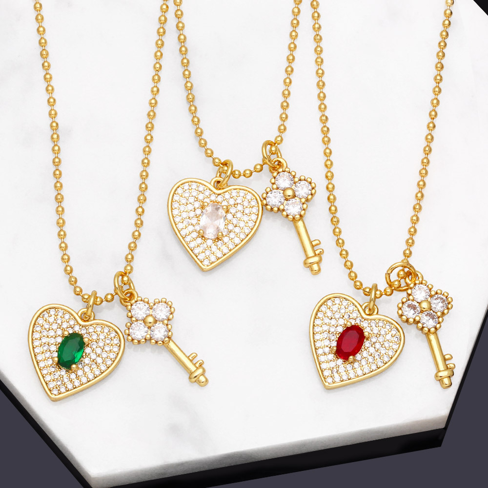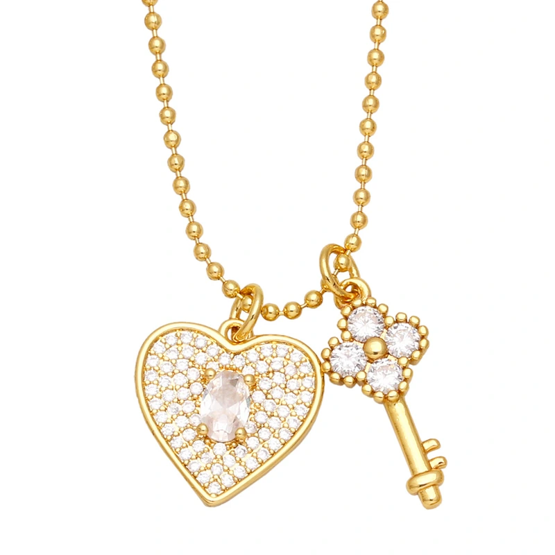 تخفيضات التصفية الأوروبية والأمريكية الأكثر مبيعًا قلادة على شكل قلب من الألماس بالكامل مع سلسلة مفاتيح مزدوجة كهدية لصديقة nkb340