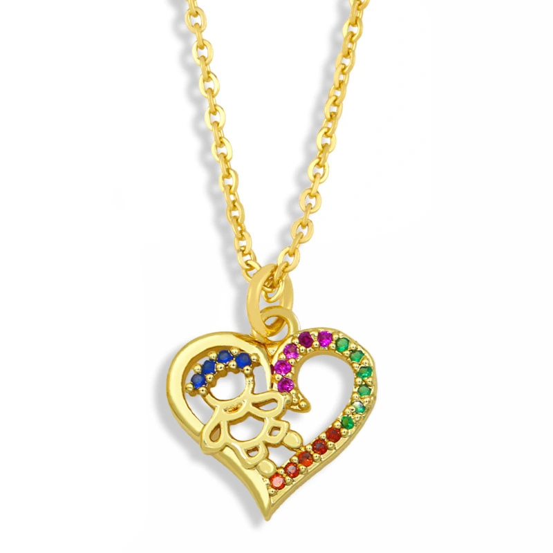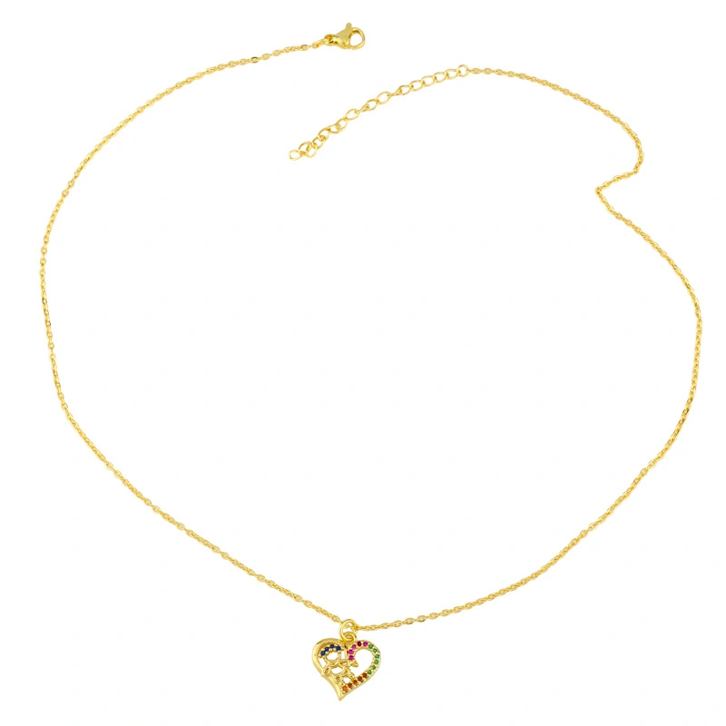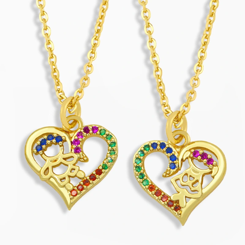 تخفيضات التصفية على قلادة الزوجين على شكل قلب الخوخ المحبب سلسلة الترقوة المرصعة بقلادة من الزركون الملون كهدية عيد ميلاد للصديقة nku14