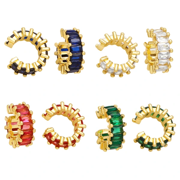 أقراط أذن أوروبية وأمريكية بسيطة من الزركون الملون بتصميم نيتش مطلية بالذهب عيار 18 قيراطًا eru52