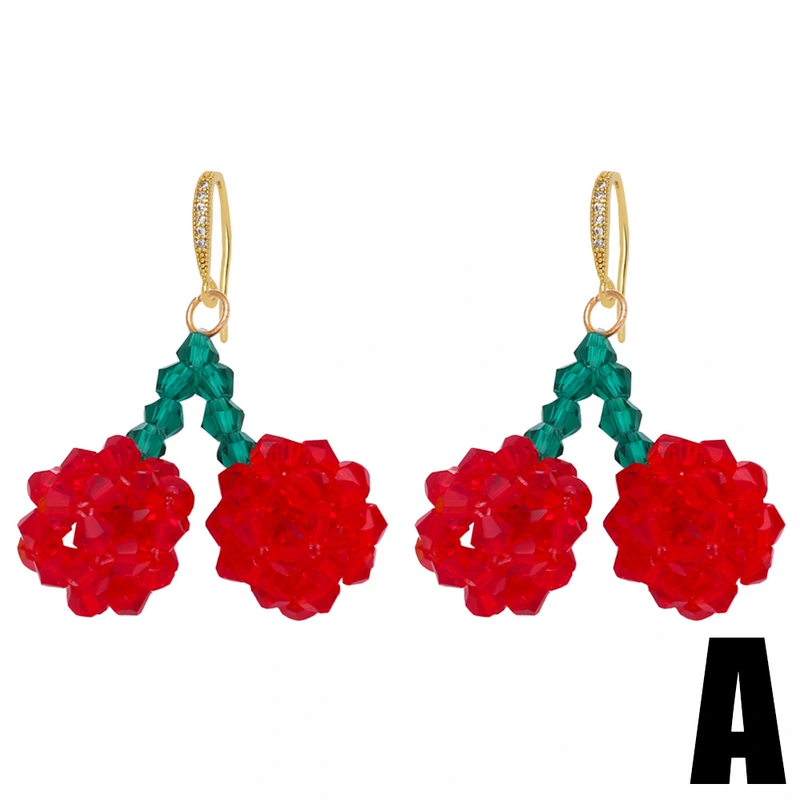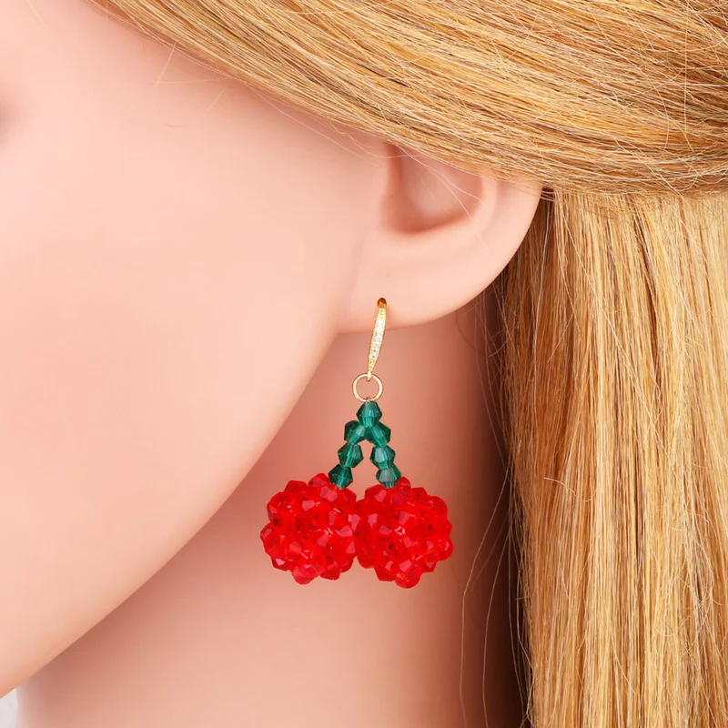 تخفيضات ساخنة على أقراط من الخرز الكريستالي الملون على شكل زهرة فاكهة الكرز أقراط من erz41
