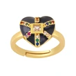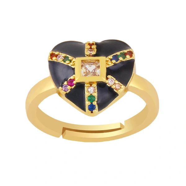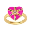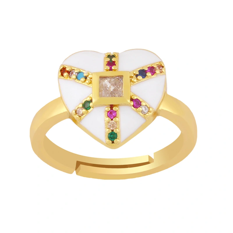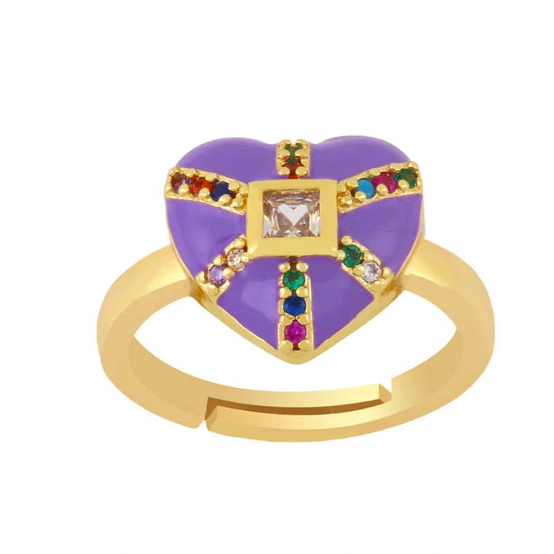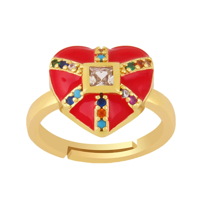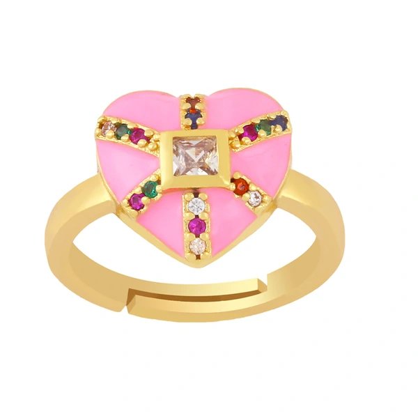 تخفيضات ساخنة على خاتم الزركون الملون للنساء بتصميم أوروبي وأمريكية أنيق على شكل قلب خوخي مع قطرة زيت rin47