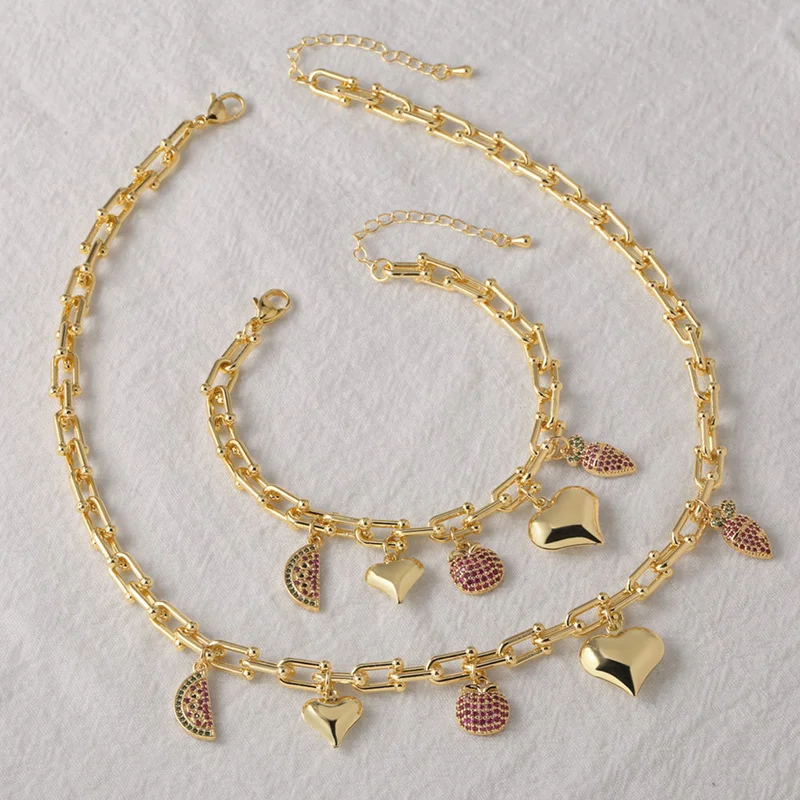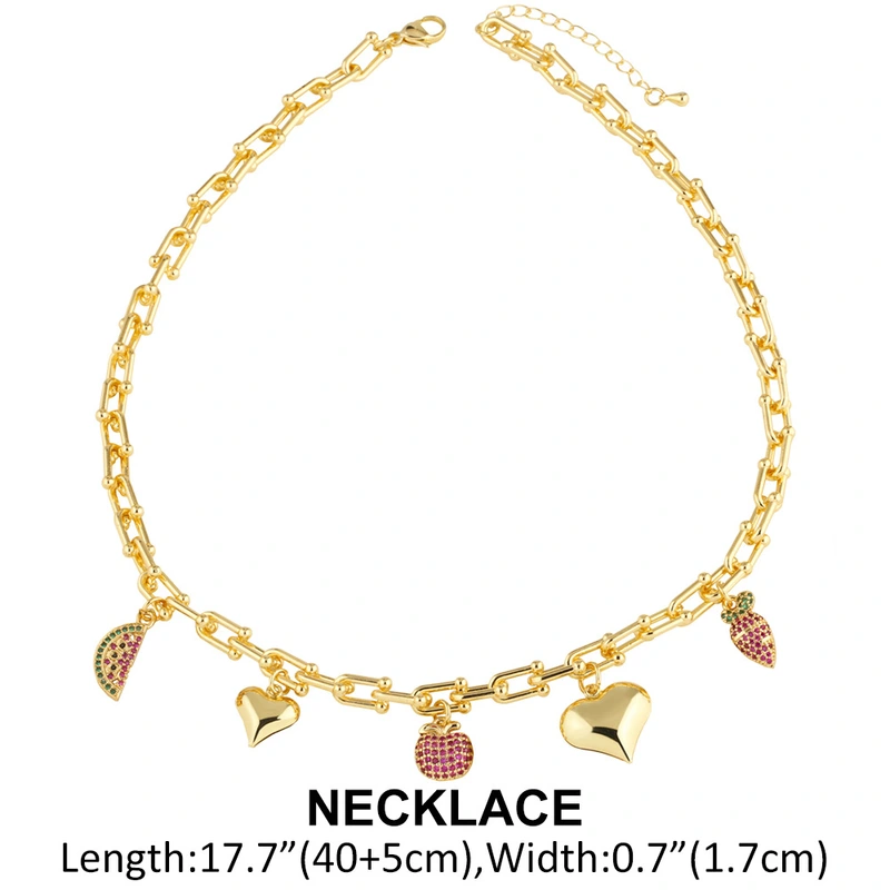 تخفيضات ساخنة على قلادة البطيخ على شكل قلب الخوخ اللامع مع سلسلة الترقوة للنساء nkb478 مطلية بالذهب