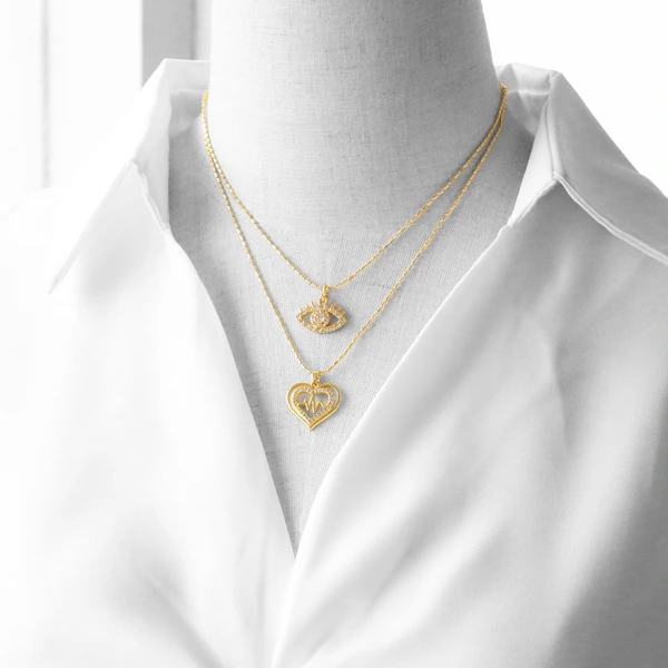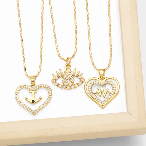 تخفيضات ساخنة على قلادة الحب النسائية الأوروبية والأمريكية المرصعة بالزركون المطلية بالذهب على شكل عين وقلب وسلسلة الترقوة nkb845