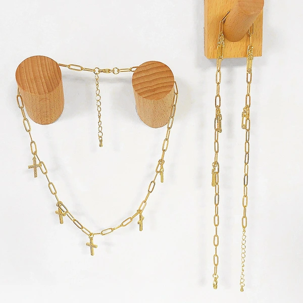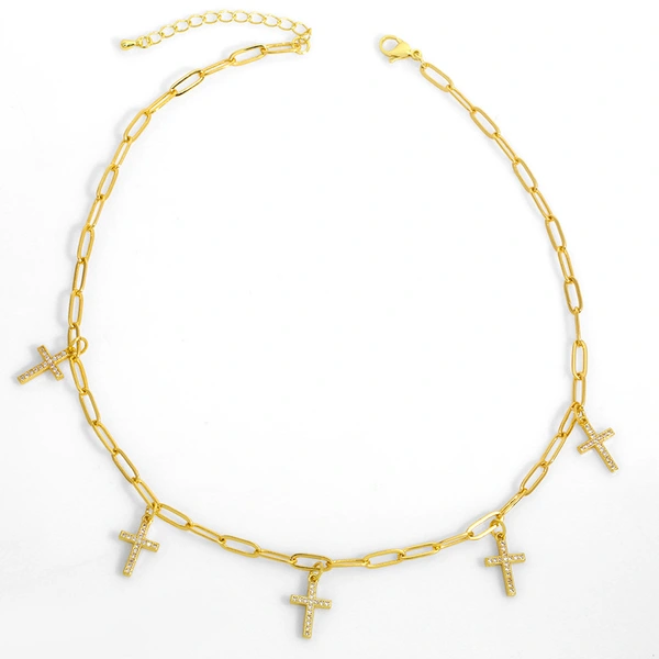 تخفيضات على إكسسوارات جديدة أوروبية وأمريكية، قلادة نسائية مرصعة بالألماس على شكل صليب وسلسلة على شكل ترقوة nkt73