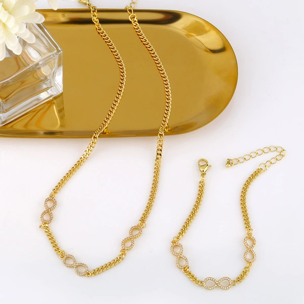 تخفيضات على سوار من الزركون الأحمر على شكل 8 قطع بتصميم أوروبي وأمريكية أنيق، سلسلة كوبية شبكية للنساء، سلسلة عنق، سلسلة ترقوة، nku28