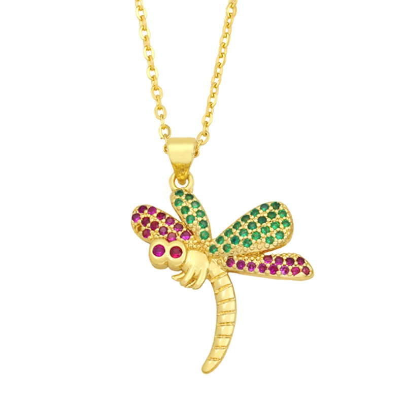 تخفيضات على قلادة اليعسوب المخصصة للنساء، مجوهرات أوروبية وأمريكية مطلية بالذهب ومرصعة بالزركون الملون nky07