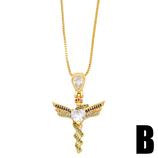 تخفيضات على قلادة جناح مرصعة بالألماس والزركون بتصميم أوروبي وأمريكي بسيط، طراز NKB566